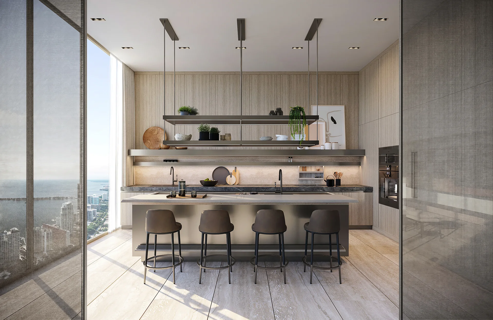 • Two-story residences feature Antonio Citterio-designed sculptural staircases.